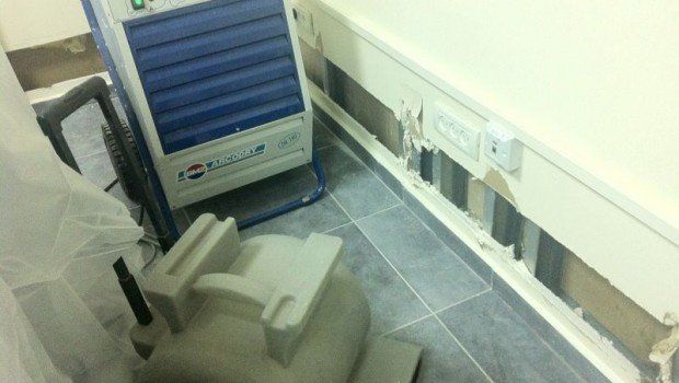 מכונת ייבוש תת רצפתית מבית חברת "היילו" חברה גרמנית הפועלת בשיטה לא פולשנית, חוסכת בזמן וכסף, משקמת ושואבת נזקי מים, מחדירה אוויר חם מתחת לריצפה.